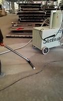 SL-SZ(MC)系列大功率吸塵器產(chǎn)品,是可移動(dòng)設(shè)備并采用真空吸附原理進(jìn)行散狀物料收集,但它的最大特點(diǎn)是二級(jí)除塵,即旋風(fēng)除塵和過濾除塵。旋風(fēng)除塵器靠氣流切向引入旋風(fēng)筒造成的旋轉(zhuǎn)運(yùn)動(dòng),使具有較大慣性離心力,粉塵顆粒或液滴被甩向桶壁,于氣體分開。旋風(fēng)分離特別適合粉塵顆粒較粗,含塵濃度較大,高溫、固液混合條件下工作。旋風(fēng)除塵是做初效過濾或預(yù)分離器使用,旋風(fēng)除塵器可過濾90%以上的粉塵,使過濾式除塵器入口濃度大大降低,這樣做不但使整個(gè)設(shè)備使用壽命加長,而且在高濃度(堆積態(tài))粉料下,對(duì)于5μ粉塵(2500目)除塵效率可達(dá)99.9%,吸塵器排放效果大大提高。過濾式除塵裝置,可根據(jù)不同的客戶需求,選擇不同的過濾材料。并不是過濾精度越高越好,過濾精度高阻力也越大。向吸鋼砂、吸鐵屑就不用過高精度的濾材,以保證有足夠的吸力。我們還可以像客戶提供覆膜濾料,防水、防油。因此對(duì)高濃度粉塵以及油水混合物的清理效果非常理想。我們還可以利用設(shè)備上的旋風(fēng)除塵,在鋼砂回收時(shí),鋼砂和灰塵的比重不同,大顆粒鋼砂被旋風(fēng)分離,落入旋風(fēng)桶內(nèi),較輕的灰塵進(jìn)入袋式除塵器,從而可實(shí)現(xiàn)鋼砂和灰塵分離,                                            該系列產(chǎn)品還有SL-SZ(MC)-2系列。它裝備了兩個(gè)相同功率的高壓風(fēng)泵,不但設(shè)備的使用效果大大提高,而且還可根據(jù)情況,選擇單機(jī)運(yùn)行和雙機(jī)運(yùn)行。